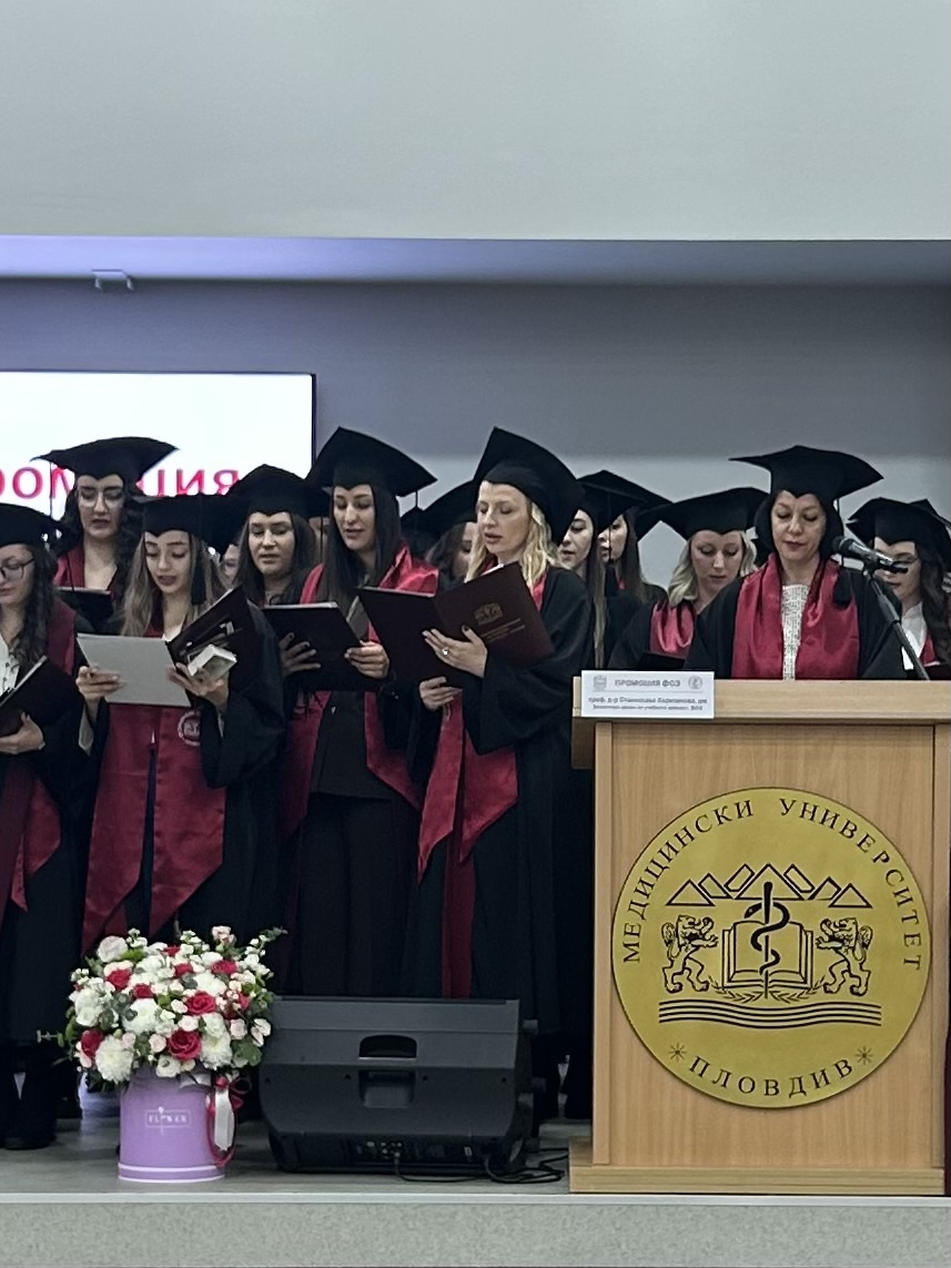 На тържествена церемония в „Аула Магна“ на Медицински университет - Пловдив дипломите си получиха абсолвентите от випуск 2025 на Факултета по обществено здраве - 187 бакалаври от специалностите „Медицинска сестра“, „Акушерка“ и „Лекарски асистент“ и магистри от „Управление на здравните грижи“ и „Мениджмънт на медико-социалните дейности и общественото здраве“. За специалност „Лекарски асистент“ това е първият завършил випуск, общо 14 души.