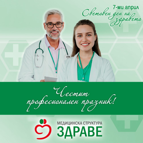 На 7 април отбелязваме Световния ден на здравето. Това е повод да честитим празника на целия екип на МС „Здраве“ и ДКЦ 1 Пазарджик, както и на всички призвани да се грижат за най-ценното богатство – здравето, и да се борят за човешкия живот!